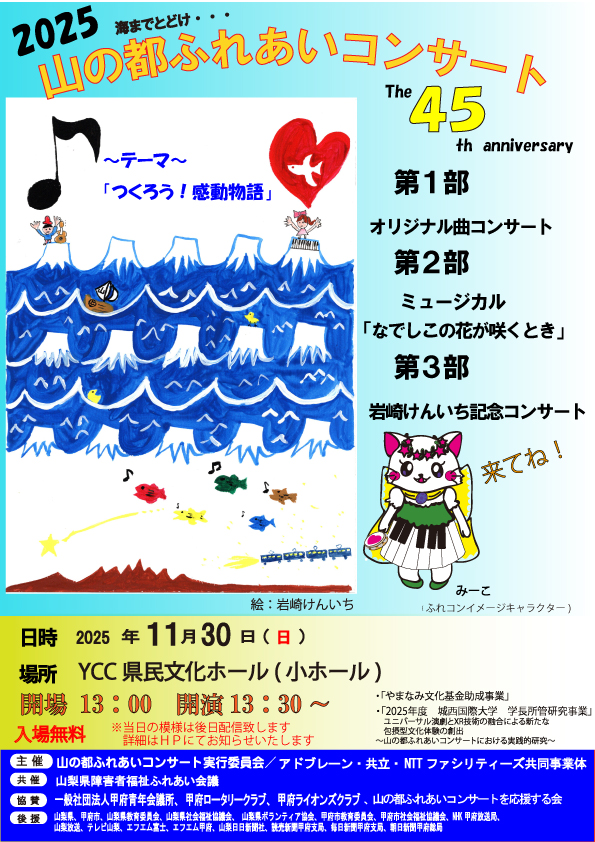 来年は、YCC県民文化ホール大ホールにて、2024年11月17日(日)に第44回山の都ふれあいコンサート』を予定しております。